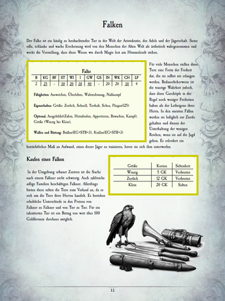 Nun habe ich es endlich geschafft einen kleinen 10 seitigen Guide zu schaffen für die wichtigsten Begleiter unter den Charakteren. Insgesamt findet ihr 8 Ideen zu Tieren und eine Anleitung zum erstellen dieser. Dieses Dokument soll den Spielleitern ein mögliches Gerüst bilden, passende Begleiter für die Spieler oder auch Nicht Spieler zu erstellen.